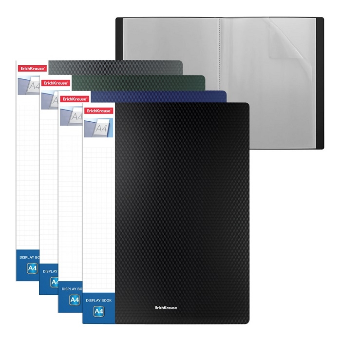 ErichKrause Diamond Original A4 с 60 прозрачни вътрешни джоба и устойчива текстура „diamond“. Стабилна конструкция благодарение на топлинно споени джобове и голям капацитет до около 300 листа. Налична в различни цветове, подходяща за професионално или учебно използване.
