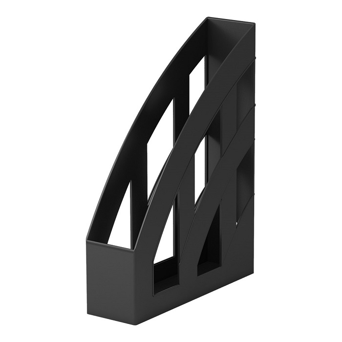 Пластична вертикална подложка за документи с ширина 75 мм от серията Office Classic, сива е черна на цвят, удобна за подреждане на бюрото.