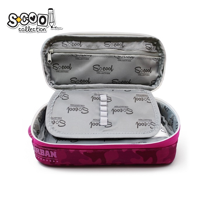 Практичен и компактен ученически несесер от серията Urban Purple Military на S-COOL. Изработен от здрав плат с камуфлажен лилав дизайн и стабилна форма, осигурява удобство и защита за ученическите пособия.
