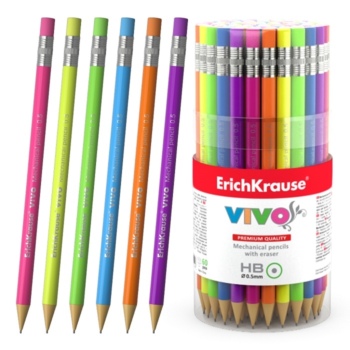 Автоматичен молив ErichKrause Vivo® 0.5 mm с гумичка, HB (в туба 60 бр.)