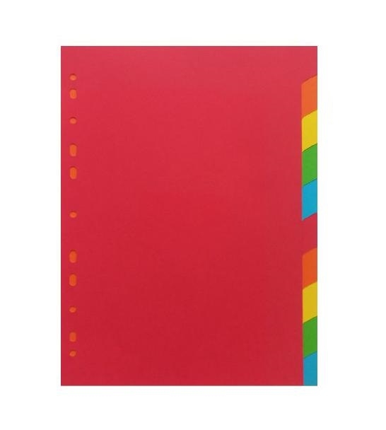 Разделителят 10 цвята картон е подходящ за разделяне на отделни видове документи или теми. Притежава перфорация за поставяне в класьор или папка, което го прави подходящ за употреба в офиса и дома.