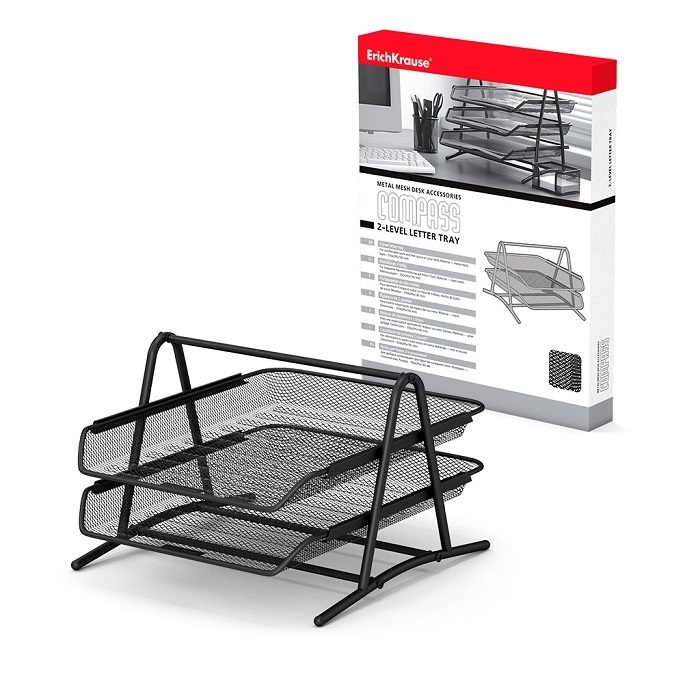 Тази 2-етажна поставка от серията Compass Classic на Erich Krause предлага стилно и практично решение за подредба на документи. Изработена е от метал с прахово покритие и метална мрежа, което осигурява стабилност и лесна визуална проверка на съдържанието. Подходяща е за бюро, офис или домашен работен кът с нужда от функционално и естетично организиране.