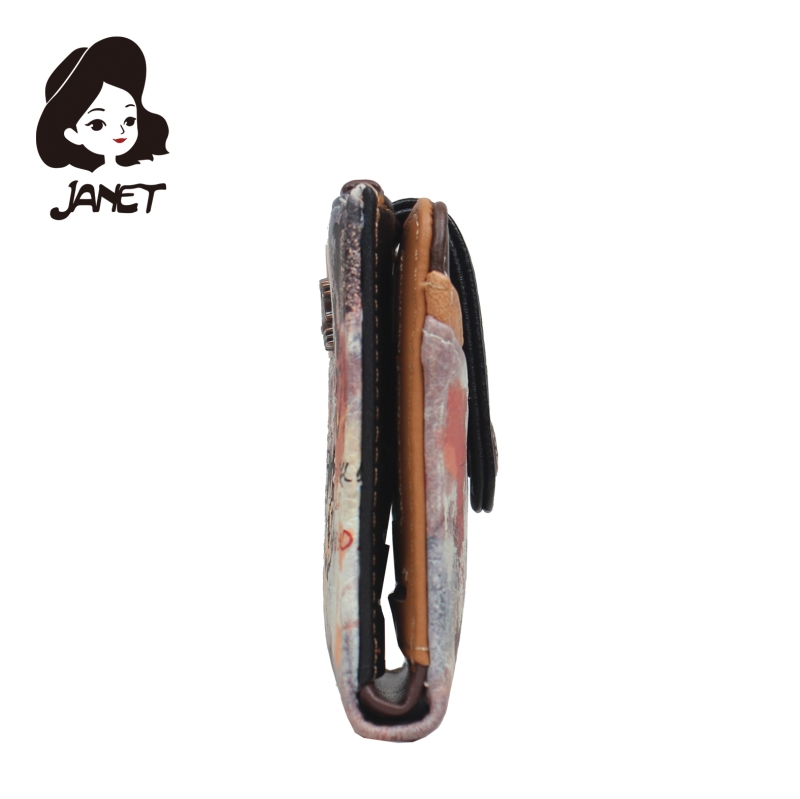 Изискано, стилно и вдъхновено от света на изкуството — портмонето JANET "ART GALLERY" съчетава елегантност и практичност в един неповторим аксесоар с размер: 12.5 x 3x 9.8см. Изработено от висококачествена еко кожа, с изчистен дизайн и артистични детайли, то е идеалният избор за съвременната жена, която цени красотата във всяка форма. Вътрешното разпределение осигурява удобство и организация — множество отделения за карти, пространство за банкноти, както и сигурен джоб с цип за монети.