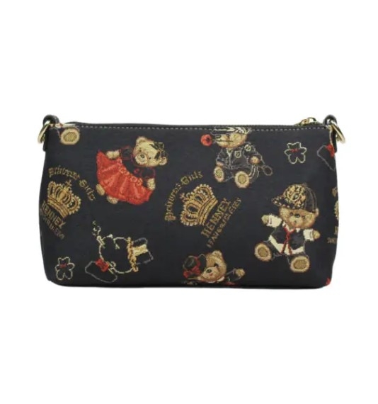 Дизайнерската чанта Henney Bear "Crown Bear" – изработена от висококачествен текстил и PU кожа с регулируеми презрамки, артистичен принт и размери 24×7×14см.