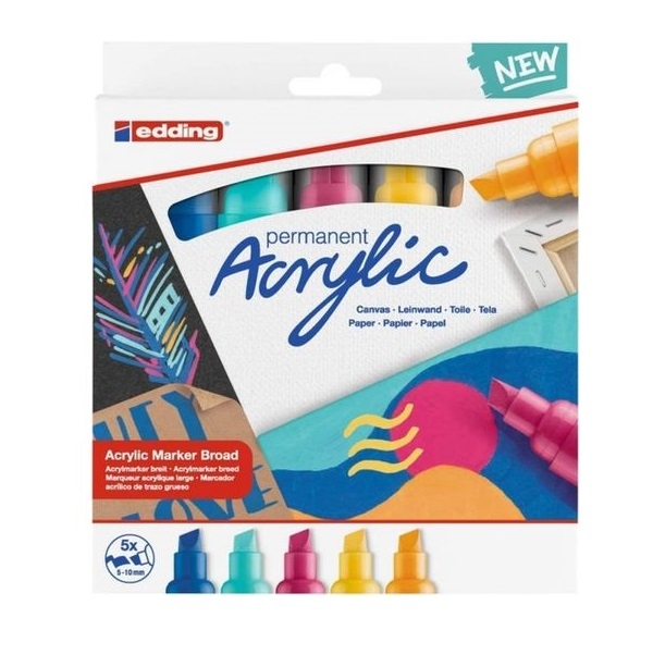 Маркер edding® 5000 Акрилен BROAD ABSTRACT, комплект 5 цвята, 5-10mm
